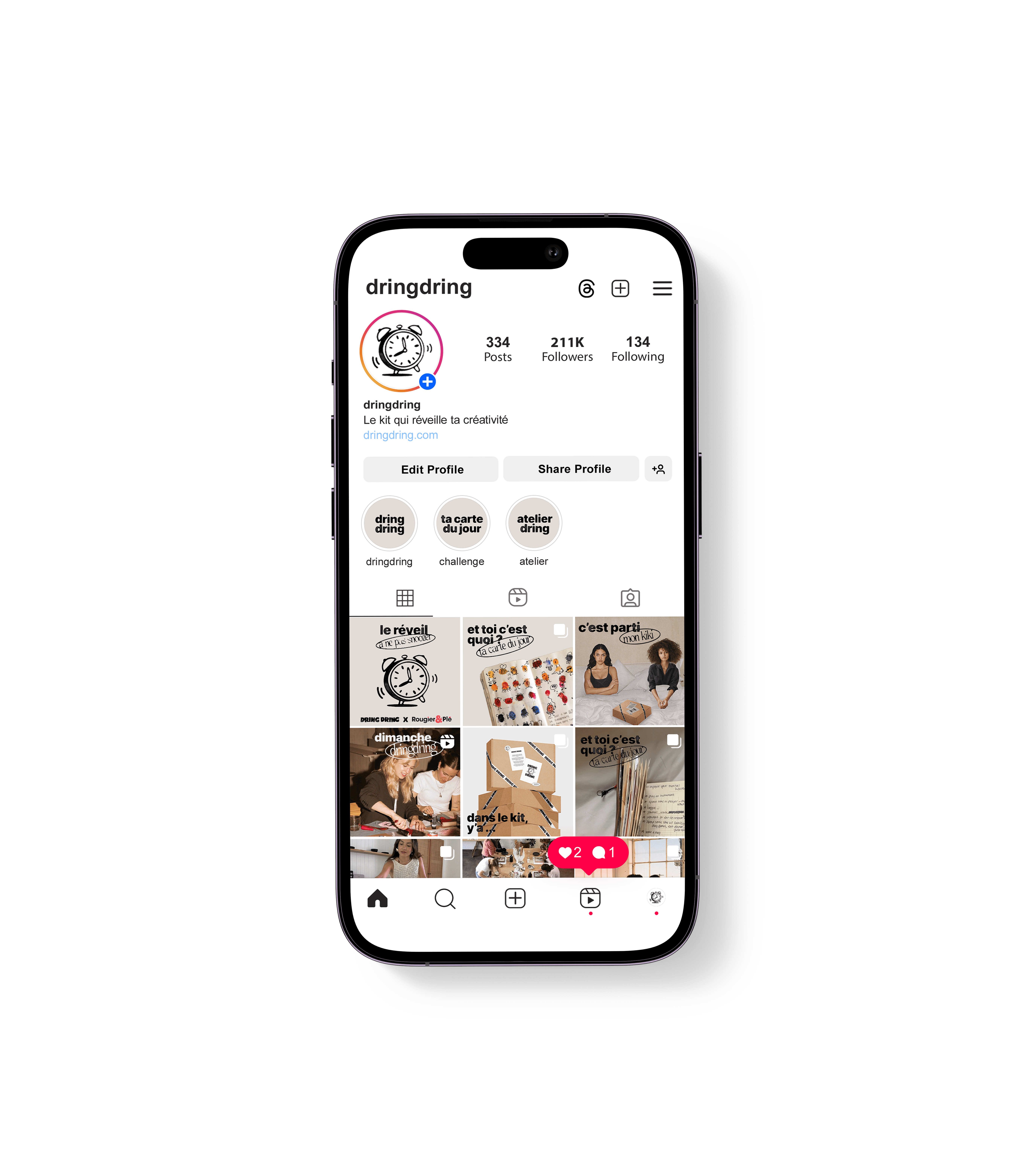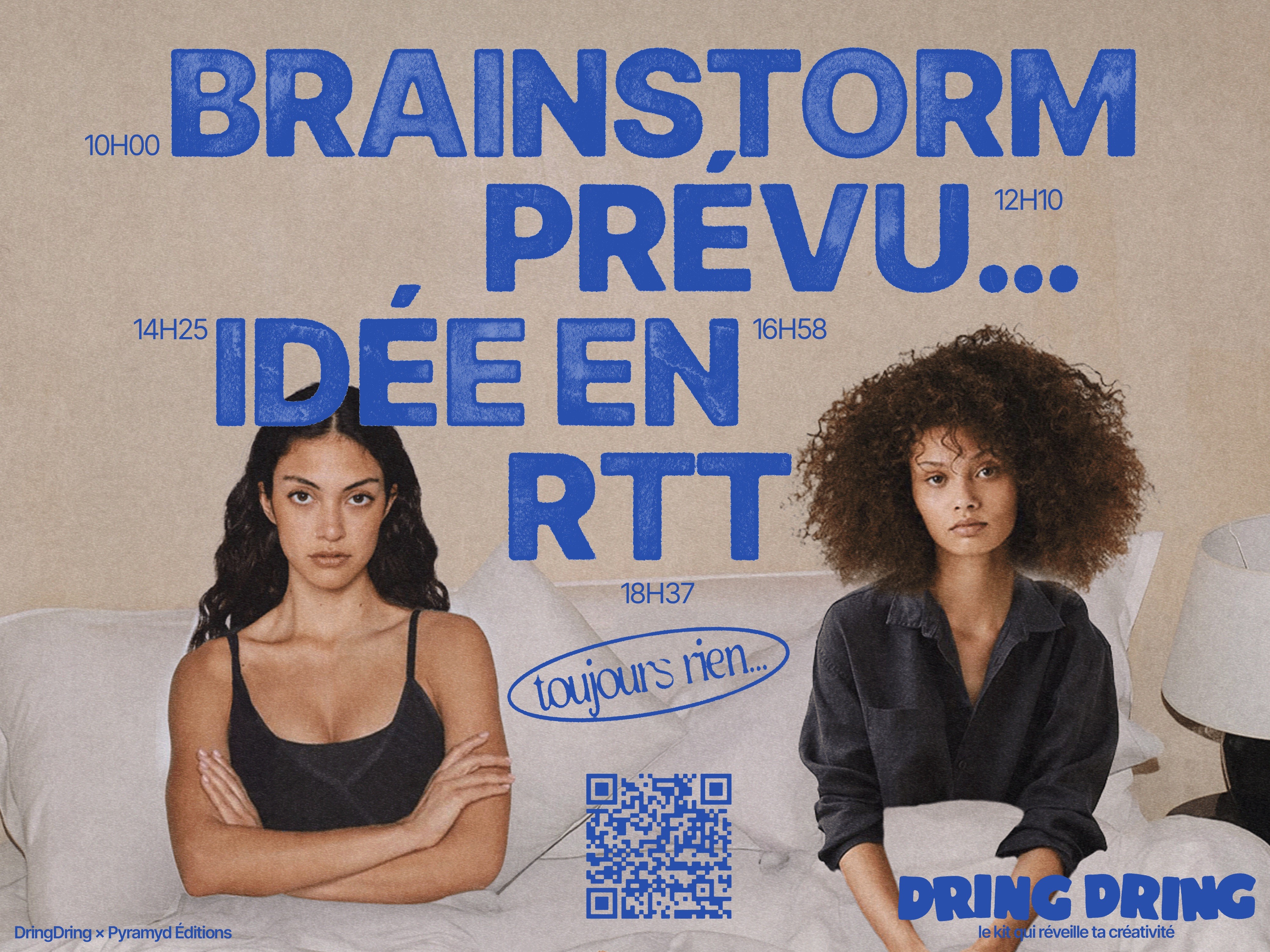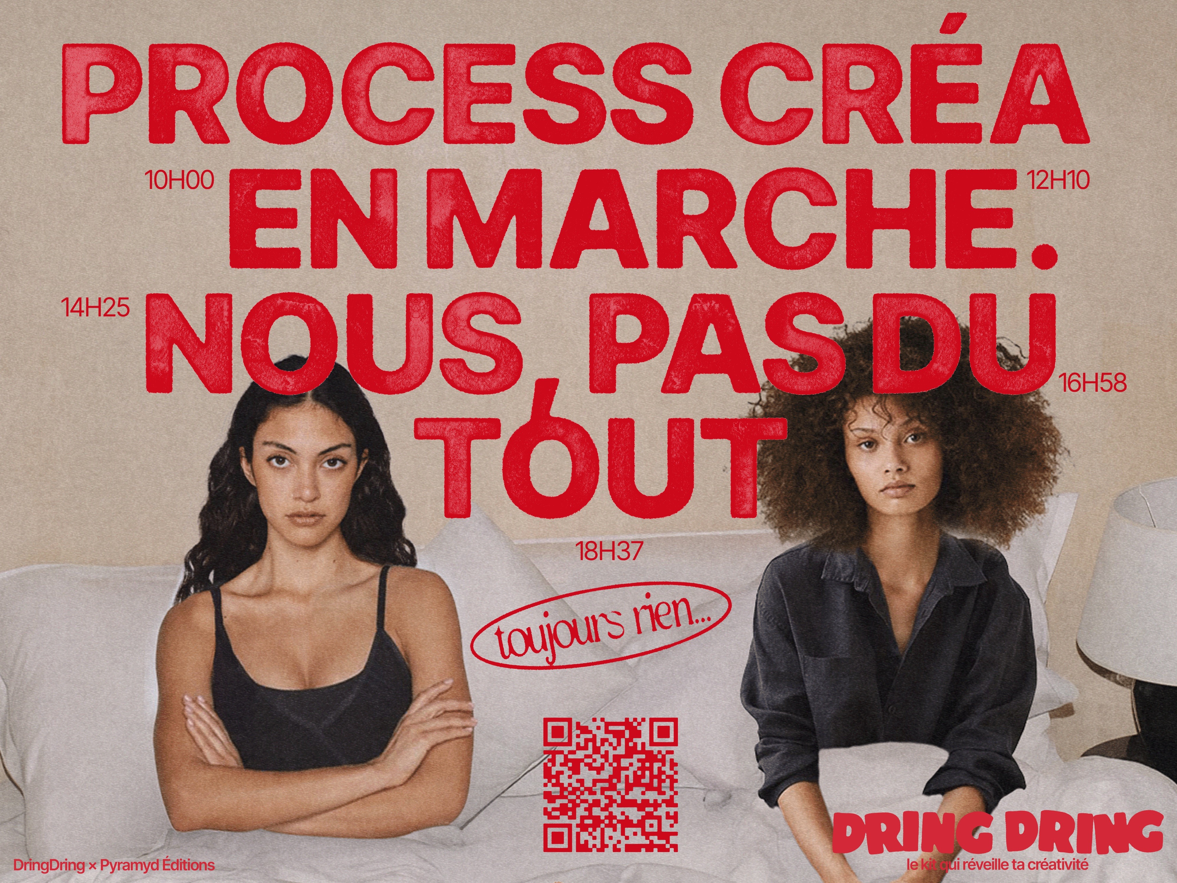 Un kit créatif pensé comme une réponse à l’overdose numérique. L’idée est née d’un constat simple : les créatifs passent plus de temps à scroller qu’à créer manuellement. Alors, DringDring a vu le jour. Un projet qui remet le geste manuel au centre, et propose de retrouver le plaisir de la création sans objectif, sans contrainte. Ici, chaque carte est une impulsion, un déclencheur qui stimule l’imagination et pousse à l’expérimentation. Le kit se déploie comme une invitation à tester, explorer, oser des formes nouvelles. Le but ? Offrir une pause créative, loin de la performance et des deadlines, et redonner envie de créer pour soi, librement et avec curiosité.